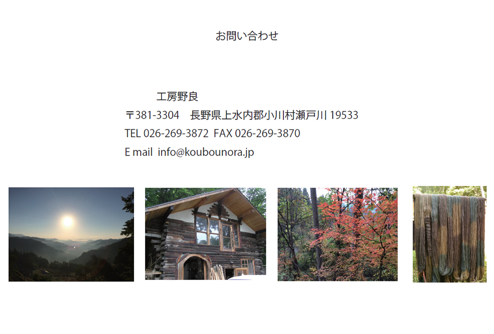 季節のたより 工房野良とは 工房の作業風景 草木染めの創作服 柿渋染めのバッグ お問い合わせ